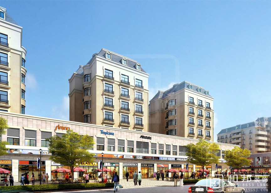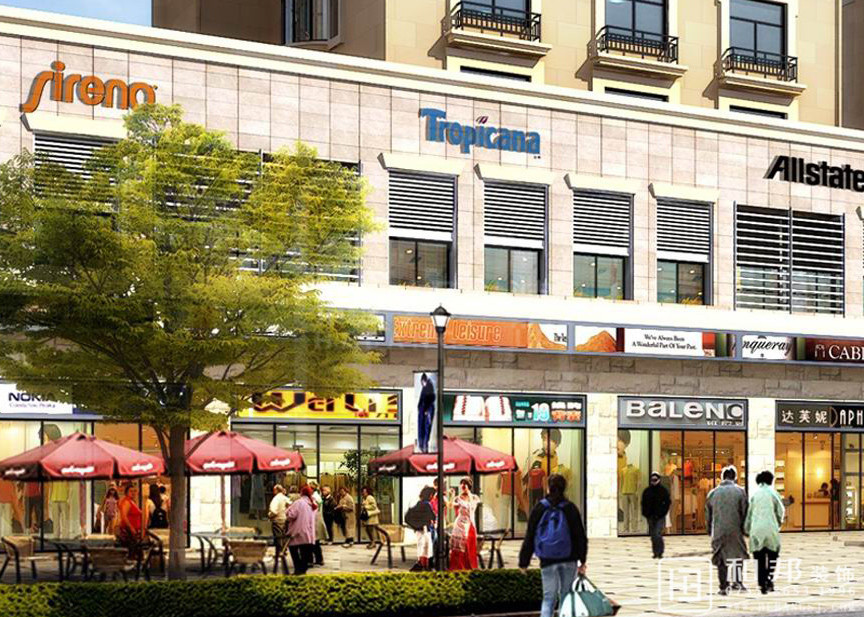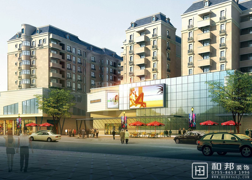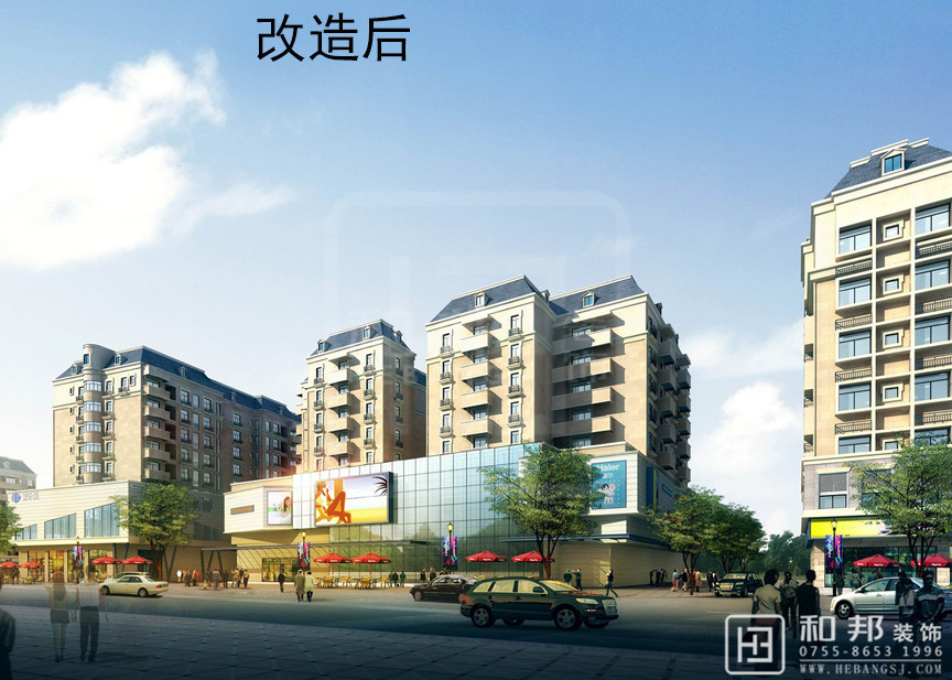本設計把小區樓下變成了商業休閑區,小區的樓統一了外觀,給人一種整潔,舒服的感覺。